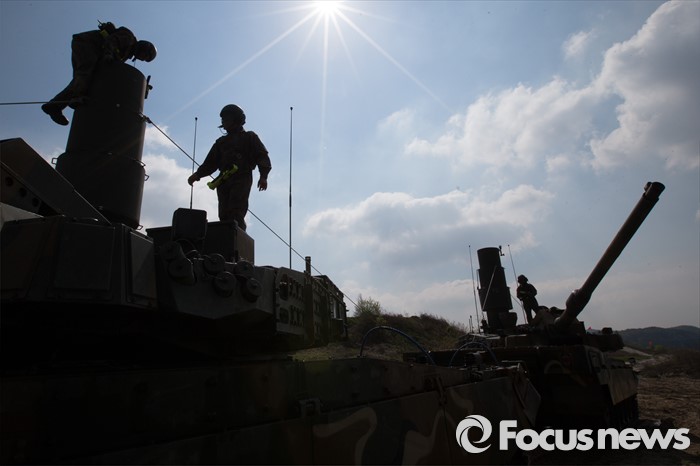 | △ 20사단, K-2 흑표전차 위에서 훈련중인 장병들 |