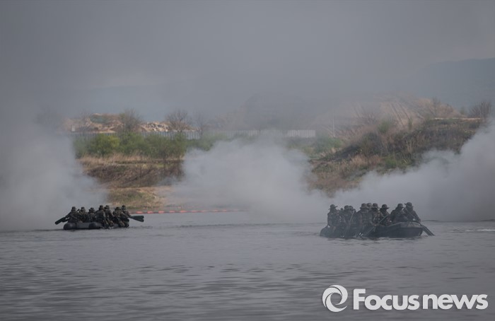 (여주=포커스뉴스) 19일 오전 경기도 여주시 남한강 일대에서 육군 20사단이 K-2 흑표전차 잠수도하훈련을 하고 있다.