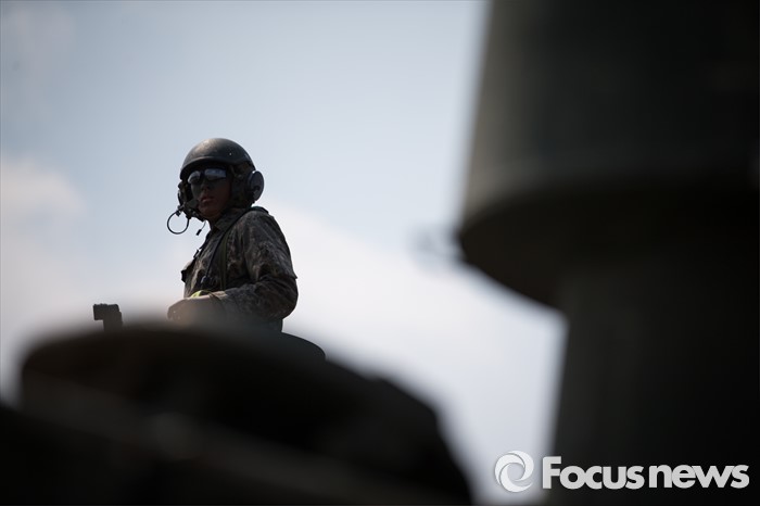 (여주=포커스뉴스) 19일 오전 경기도 여주시 남한강 일대에서 육군 20사단이 K-2 흑표전차 잠수도하훈련을 하고 있다.