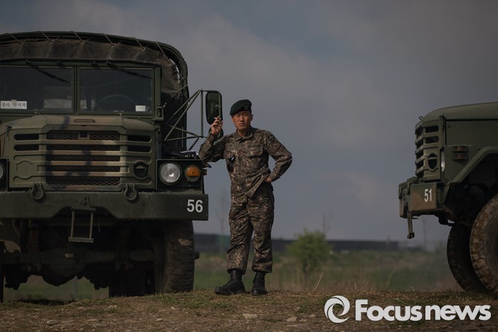 (여주=포커스뉴스) 19일 오전 경기도 여주시 남한강 일대에서 열린 육군 20사단 K-2 흑표전차 잠수도하훈련 휴식 시간에 한 교관이 휴식을 취하고 있다.