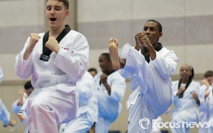 (서울=포커스뉴스) 19일 오후 서울 용산구 국방부 다목적홀에서 한국문화 체험행사에 참가한 주한미군 장병들이 태권도를 배우고 있다.