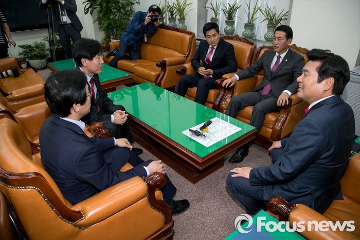 (서울=포커스뉴스) 원유철 새누리당 원내대표가 19일 오후 서울 여의도 국회에서 원 원내대표의 비상대책위원회 체제에 반대 입장을 가진 의원 및 당선인으로 구성된 당 혁신모임(가칭) 소속 의원들과 면담하고 있다.