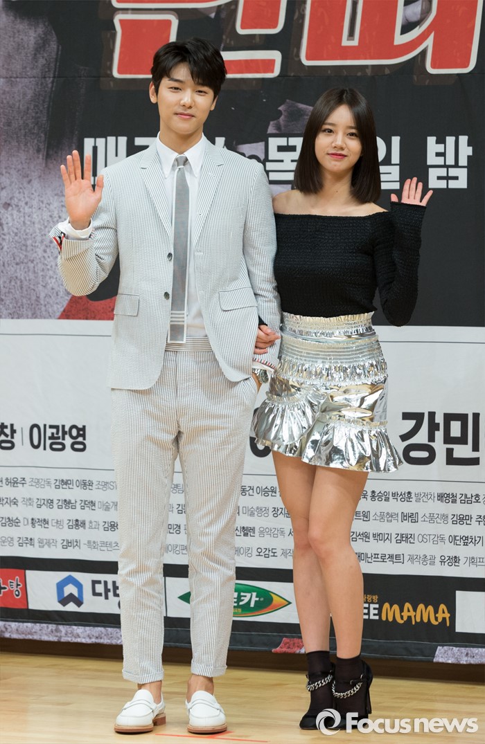 (서울=포커스뉴스) 19일 오후 서울 SBS 목동사옥에서 열린 SBS 드라마 스페셜 '딴따라' 제작발표회에 참석한 배우 강민혁(왼쪽)과혜리가 포토타임을 갖고 있다.