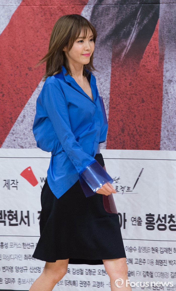 (서울=포커스뉴스) 19일 오후 서울 SBS 목동사옥에서 열린 SBS 드라마 스페셜 '딴따라' 제작발표회에 참석한 배우 채정안이 포토타임을 위해 이동하고 있다.