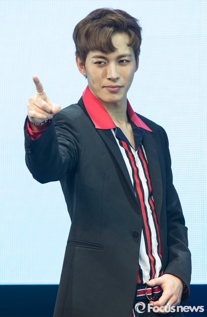 홀서울=포커스뉴스) 19일 오후 서울 마포구 롯데카드 아트센터에서 열린 아이돌그룹 VIXX의 싱글앨범 'Zelos' 발표 쇼케이스에 참여한 멤버 홍빈이 포토타임을 갖고 있다.