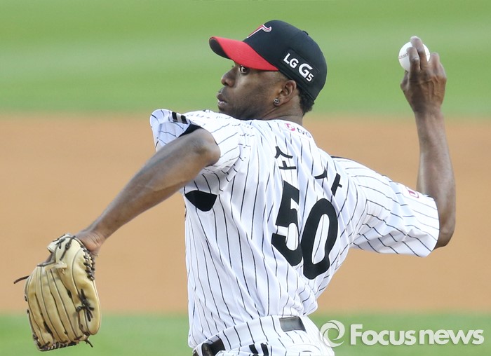 (서울=포커스뉴스) 19일 서울 잠실구장에서 열린 2016 프로야구 NC-LG 경기에서 1회초 LG 선발투수 소사가 투구하고 있다.