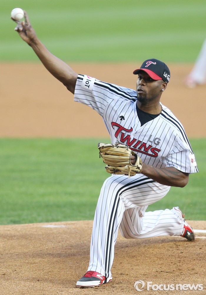 (서울=포커스뉴스) 19일 서울 잠실구장에서 열린 2016 프로야구 NC-LG 경기에서 1회초 LG 선발투수 소사가 투구하고 있다.