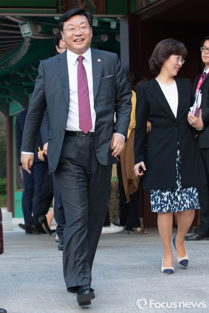 (서울=포커스뉴스) 주형환 산업통상자원부 장관이 19일 오후 서울 중구 신라호텔에서 열린 '제2회 컨데나스트 인터내셔널 럭셔리 콘퍼런스' 전야제에 참석 후 행사장을 나서고 있다.
