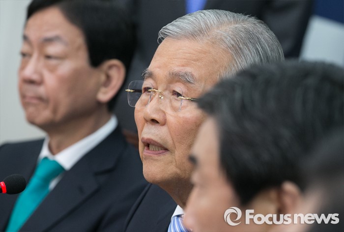 (서울=포커스뉴스) 김종인(왼쪽 두번째) 더불어민주당 비대위 대표가 20일 오전 서울 여의도 국회에서 열린 비상대책위원회의에 참석해 모두발언을 하고 있다.