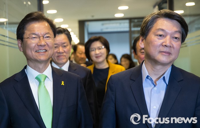 (서울=포커스뉴스) 안철수, 천정배 국민의당 상임공동대표가 20일 오전 서울 마포 당사에서 열린 최고위원회의에 참석하고 있다.
