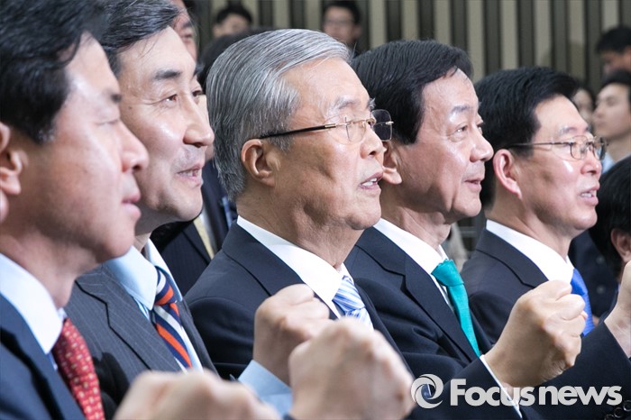 | △ 화이팅 외치는 김종인·이종걸·진영 |