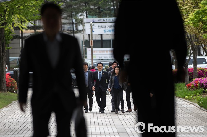 (서울=포커스뉴스) 저축은행에서 수천만원을 받은 혐의로 기소되어 대법원에서 무죄 취지 판결을 받은 박지원 국민의당 의원이 20일 오전 서울 서초구 서울고등법원에서 열린 파기환송심에 참석하기 위해 법원으로 들어서고 있다.