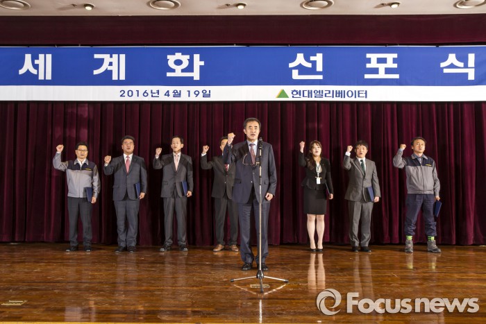 (서울=포커스뉴스) 현대엘리베이터는 세계화 선포식을 개최하고 2030년 '글로벌 탑 7' 진입을 향한 전략을 발표했다고 20일 밝혔다.