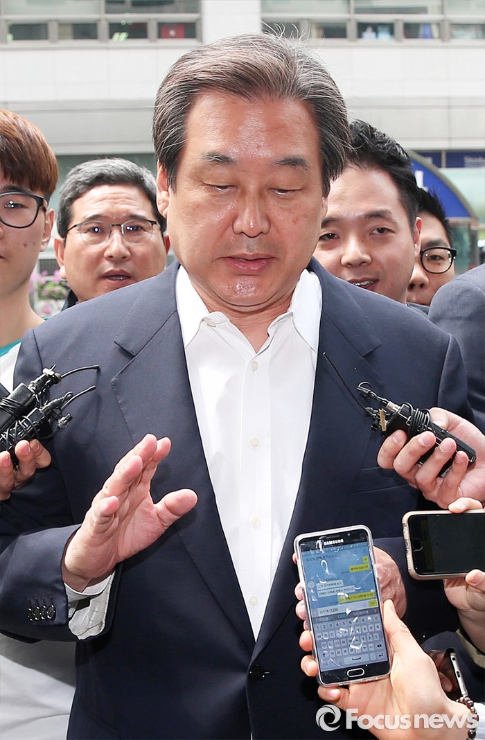(서울=포커스뉴스) 김무성 전 새누리당 대표가 20일 오후 서울 여의도의 한 중식당에서 당 사무처 국실장 송별 오찬회에 참석하는 동안, 기자들의 질문을 듣고 있다.
