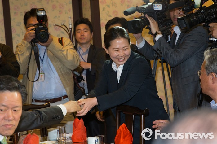 (서울=포커스뉴스) 권은희 국민의당 의원이 20일 오후 서울 마포 불교방송국 지하 1층의 한 음식점에서 열린 국민의당 소속 제19대 국회의원 오찬 간담회장에 참석해 동료 의원들과 인사를 나누고 있다.