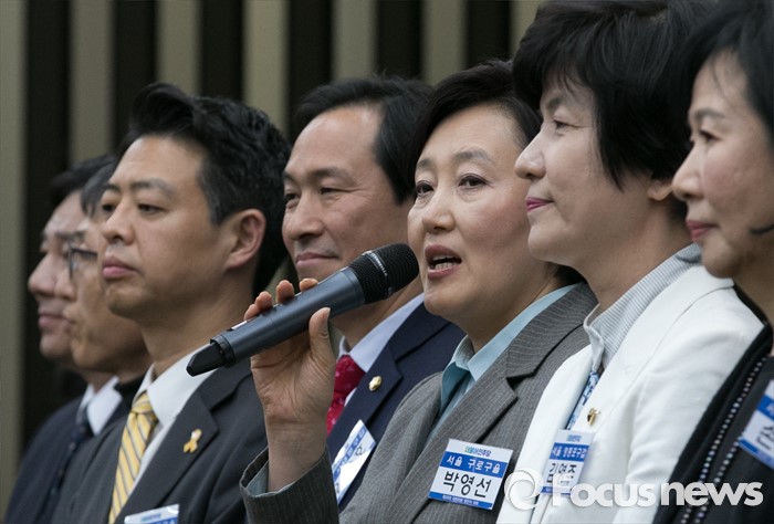 (서울=포커스뉴스) 20일 오전 서울 여의도 국회에서 열린 더불어민주당 20대 총선 당선자 대회에 참석한 박영선 당선인이 인사말을 하고 있다.