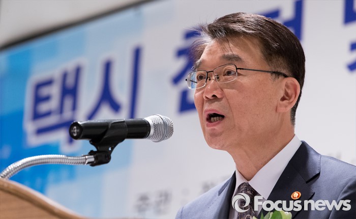 (서울=포커스뉴스) 20일 오후 서울 송파구 교통회관에서 택시 친절 및 교통안전 향상 결의대회에 참석한 강호인 국토교통부 장관이 격려사를 하고 있다.