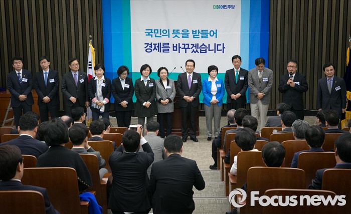 (서울=포커스뉴스) 20일 오전 서울 여의도 국회에서 열린 더불어민주당 20대 총선 당선자 대회에 참석한 서울 지역 당선인들이 인사말을 하고 있다.
