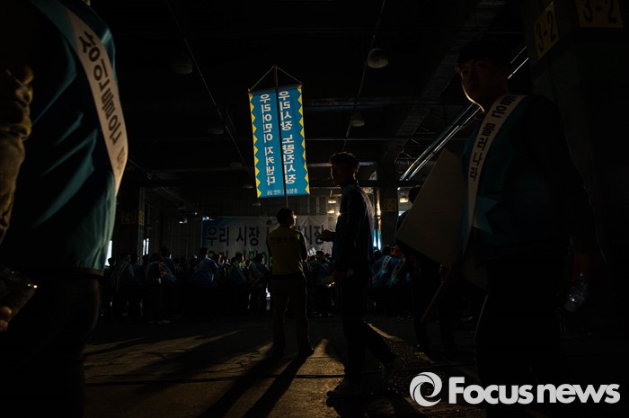 (서울=포커스뉴스) 노량진수산시장 현대화 사업으로 상인들과 수협 간 갈등이 고조되고 있는 20일 오후 서울 영등포구 노량진수산시장에서 전국 어민 2000여 명이 시장 정상화를 촉구하는 총궐기 대회를 열고 있다.