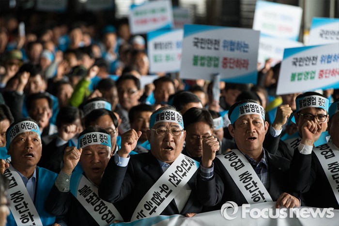 (서울=포커스뉴스) 노량진수산시장 현대화 사업으로 상인들과 수협 간 갈등이 고조되고 있는 20일 오후 서울 영등포구 노량진수산시장에서 전국 어민 2000여 명이 시장 정상화를 촉구하는 총궐기 대회를 열고 있다.