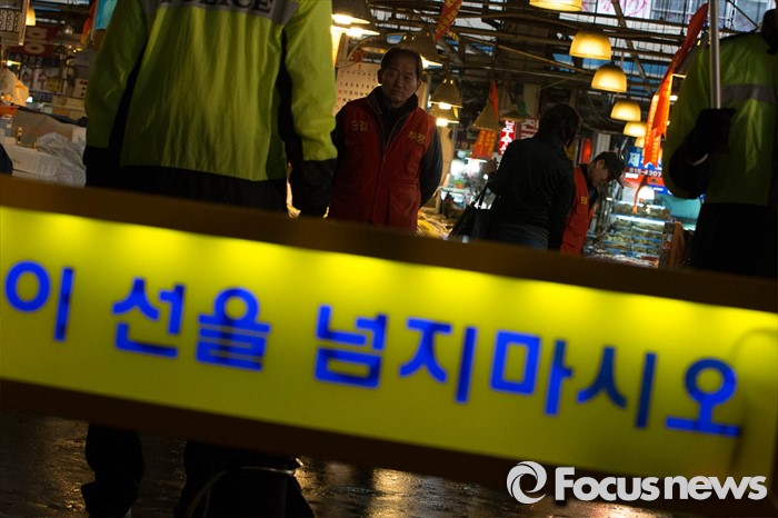 (서울=포커스뉴스) 노량진수산시장 현대화 사업으로 상인들과 수협 간 갈등이 고조되고 있는 20일 오후 서울 영등포구 노량진수산시장에서 상인들이 시장 정상화 촉구 총궐기대회를 지켜보고 있다.