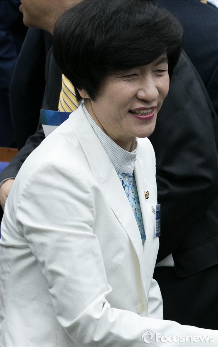 (서울=포커스뉴스) 20일 서울 여의도 국회에서 열린 더불어민주당 20대 총선 당선자 대회에 참석한 김영주 당선인이 동료 당선인과 대화하고 있다.