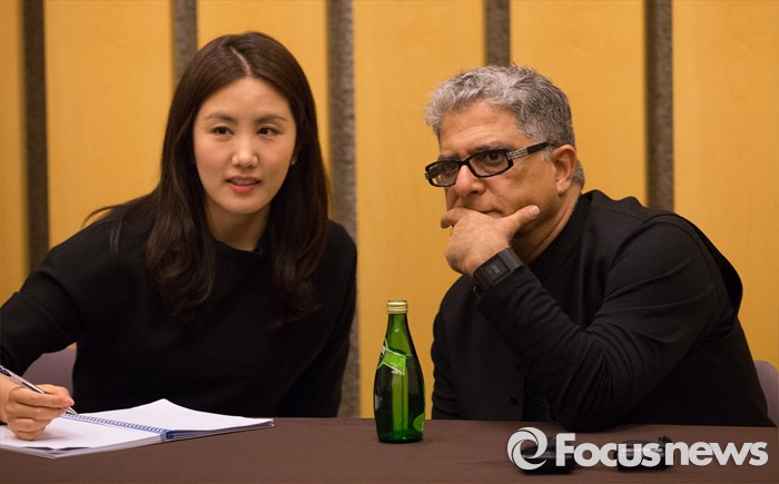 | △ 취재진 질문 듣는 디팍 초프라 |