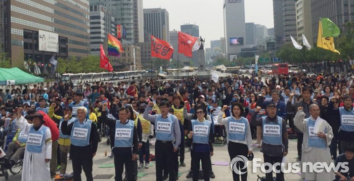 광화문 광장에서는 오후 1시부터 420장애인차별철폐 투쟁결의대회가 진행됐다.