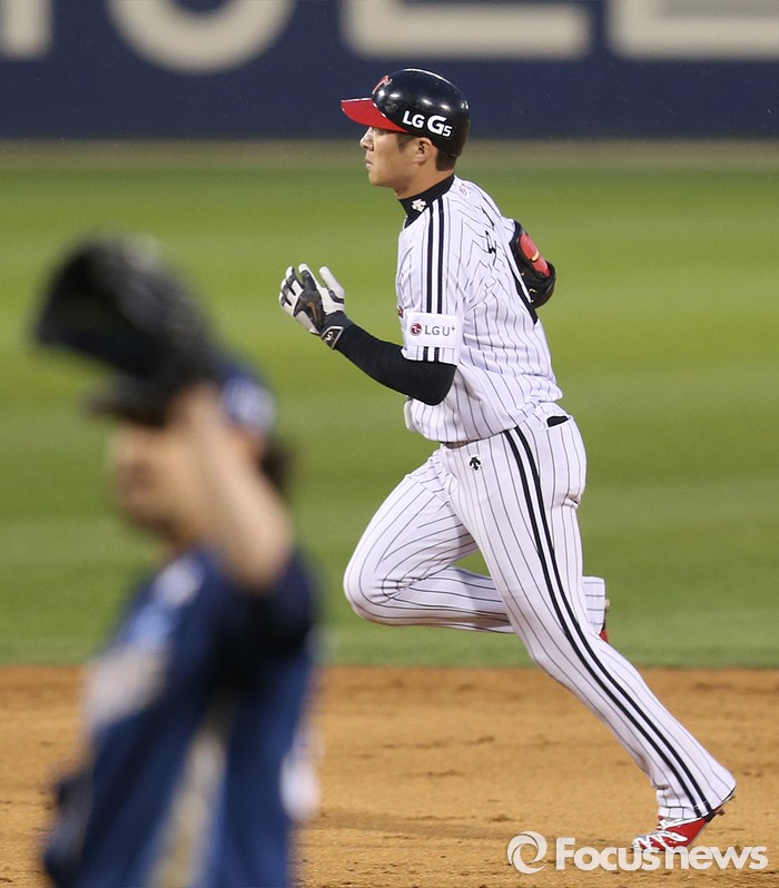 (서울=포커스뉴스) 20일 서울 잠실구장에서 열린 2016 프로야구 NC-LG 경기 2회말 2사 1,2루에서 LG 오지환이 우중월 3점 홈런을 치고 베이스를 돌고 있다.