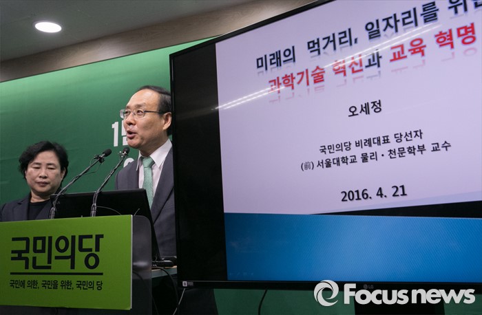 (서울=포커스뉴스) 오세정(오른쪽), 신용현 국민의당 비례대표 당선인이 21일 오전 서울 마포구 당사에서 안철수 상임공동대표의 과학의 날 특별 브리핑에 이어 추가 설명을 하고 있다.