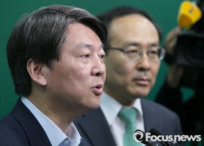 (서울=포커스뉴스) 안철수 국민의당 상임공동대표가 21일 오전 서울 마포구 당사에서 과학의 날 특별 브리핑을 하고 있다. 오른쪽은 오세정 비례대표 당선인.