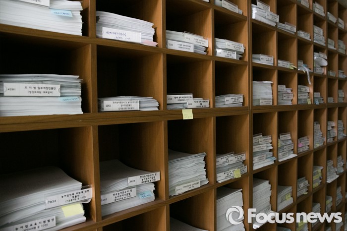 (서울=포커스뉴스) 제19대 국회 마지막 임시국회 개원일인 21일 오전 서울 여의도 국회 본관의 한 상임위원회 앞에 법안 서류들이 쌓여 있다.