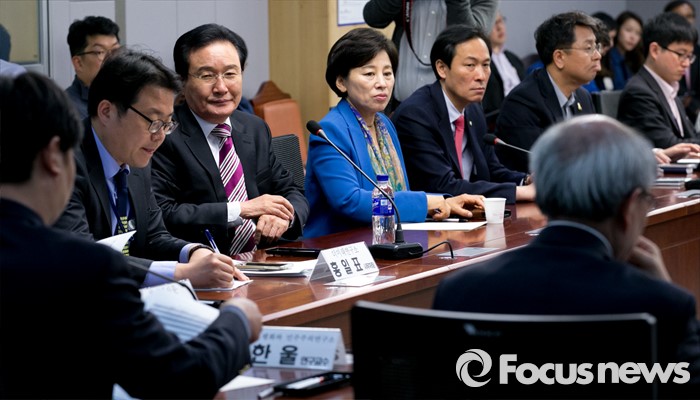 (서울=포커스뉴스) 21일 오전 서울 여의도 국회 의원회관에서 더미래연구소와 더좋은미래 모임 공동주최로 열린 4·13 총선 평가와 전망 확인된 민심, 남겨진 과제 토론회에 참석한 이철희(오른쪽 두번째부터) 더불어민주당 전략기획위원장, 우상호, 남인순, 변재일 의원이 토론자들의 발언을 듣고 있다.