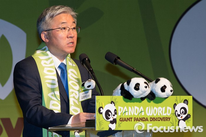 (용인=포커스뉴스) 21일 오전 경기도 용인시 에버랜드에서 열린 '판다월드 개관식'에서 김종덕 문화체육관광부 장관이 축사를 하고 있다.