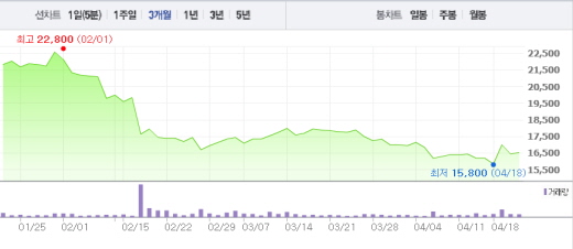 이어 김 연구원은 “이 딜을 최대주주 지분매각 건과 관련된 기류 변화(불확실성 감소의 방향)로 해석할 소지는 현재까지 찾기 어렵다”고 덧붙였다.주가흐름<사진출처=네이버 캡쳐>