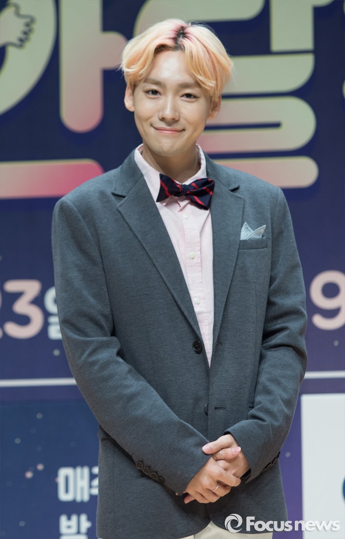 (서울=포커스뉴스) 21일 오후 서울 마포구 JTBC 사옥에서 열린 예능프로그램 '반달친구' 제작발표회에 참석한 아이돌 그룹 위너의 멤버 김진우가 포토타임을 갖고 있다.