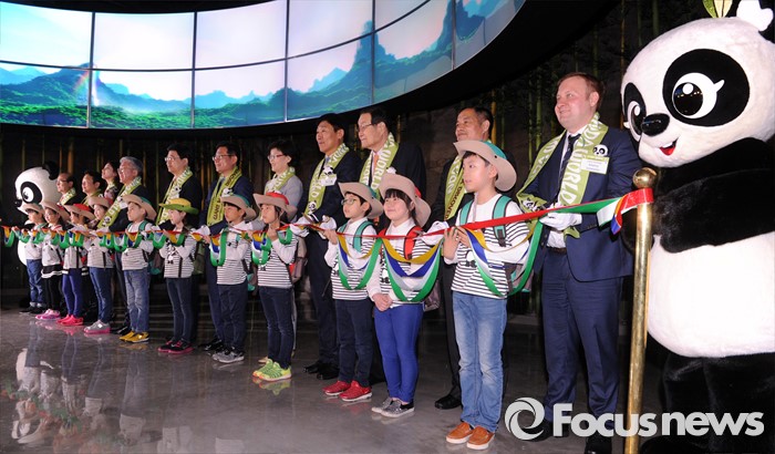(용인=포커스뉴스) 21일 오전 경기도 용인시 에버랜드에서 열린 '판다월드 개관식'에서 정연만(왼쪽부터) 환경부 차관, 남경필 경기도지사, 미쓰에이 수지, 김종덕 문화체육관광부 장관, 탄광민 중국 국가 임업국 사장(차관급), 김봉영 삼성물산 대표이사 사장, 학효비 주한중국대사관대리대사를 비롯한 참석자들이 기념촬영을 하고 있다.