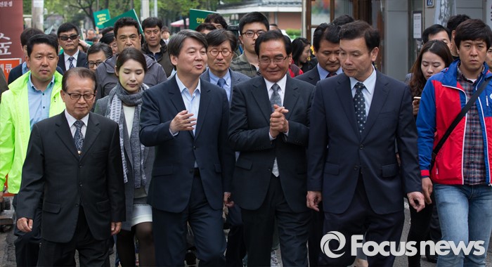 (청주=포커스뉴스) 안철수 국민의당 상임공동대표가 21일 오후 충북 청주 상당구 성안길을 찾아 시민들과 인사를 하기 위해 이동하고 있다. 안 대표는 4.13 국회의원선거에서 국민의당을 지지해준 것에 대한 감사의 뜻을 전했다.