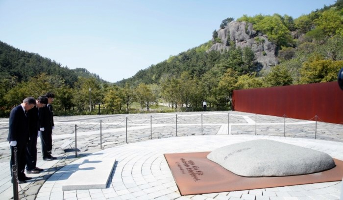 오상호 노무현재단 사무처장은 "대통령 서거 7주기를 맞아 봉하마을에서 열리는 다양한 행사에 시민 여러분의 많은 관심과 참여를 바란다"고 밝혔다.문재인 더불어민주당 전 대표와 故 김대중 전 대통령의 삼남 김홍걸 국민통합위원장이 19일 경남 김해 봉하마을을 방문해 故 노무현 전 대통령 묘역 참배를 하고 있다. <사진제공=문재인 의원 블로그> 2016.04.19 포커스포토
