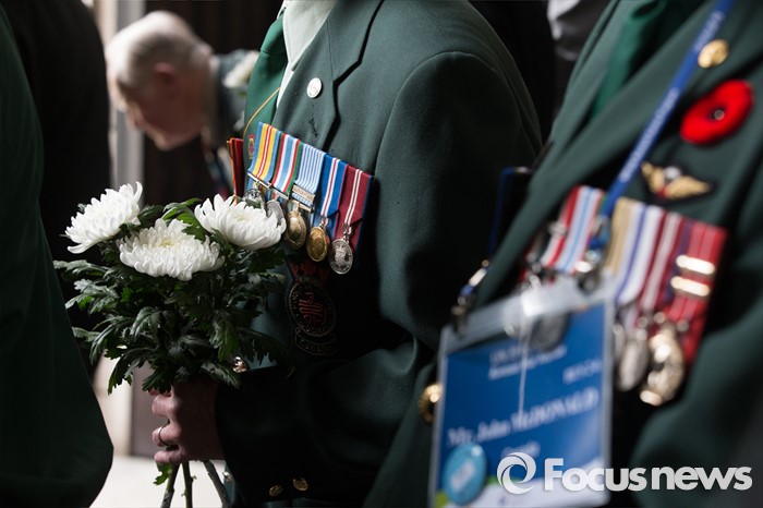 (서울=포커스뉴스) 임진강 및 가평전투 65주년을 맞은 21일 오후 서울 용산구 전쟁기념관에서 6.25전쟁에 참전했던 영연방(영국, 캐나다, 호주, 뉴질랜드) 참전용사들이 헌화를 하고 있다.