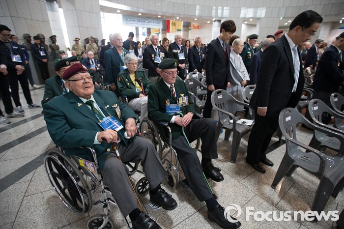 (서울=포커스뉴스) 21일 오후 서울 용산구 전쟁기념관에서 열린 6.25 전쟁영웅 선정패 수여식에서 참전용사들이 참석하고 있다.