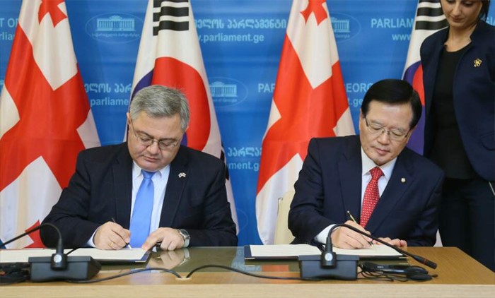 | △ 서명하는 한국-조지아 국회의장 |