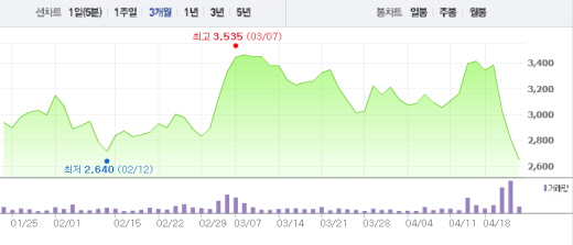 22일 오전 9시14분 현재 한진해운은 전일 대비 3.48%(115원) 떨어진 3185원에 거래되고 있다. 외국인과 기관이 매도에 나서며 20일 10%, 21일 7.2%의 하락폭을 기록한데 이어 하락세를 나타내고 있는 중이다.