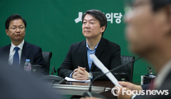 (서울=포커스뉴스) 안철수(가운데), 천정배 국민의당 상임공동대표가 22일 오전 서울 마포 당사에서 열린 최고위원회의에 참석하고 있다.