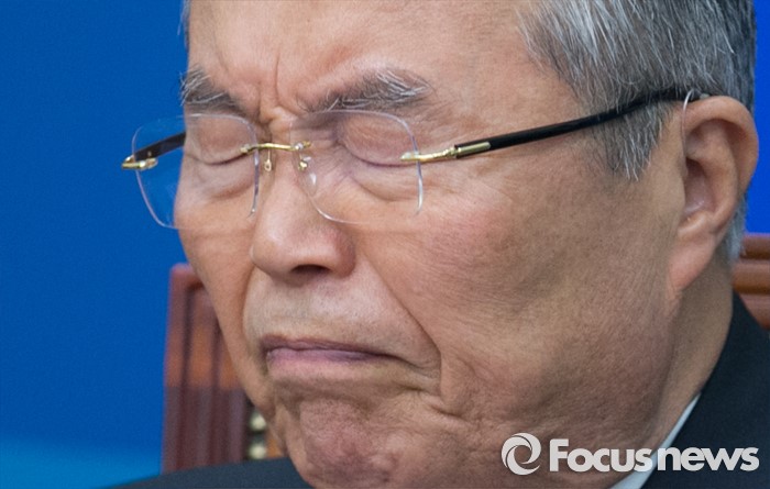 (서울=포커스뉴스) 김종인 더불어민주당 비대위 대표가 22일 오전 서울 여의도 국회에서 열린 비상대책위원회의에 참석해 기침을 하고 있다.