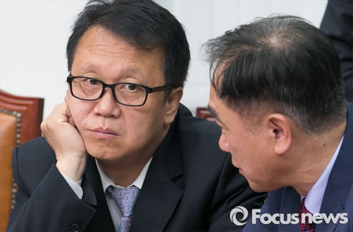(서울=포커스뉴스) 22일 오전 서울 여의도 국회에서 더불어민주당 비상대책위원회의를 마친 뒤 민병두(왼쪽) 민주정책연구원장과 정장선 총무본부장이 대화하고 있다.