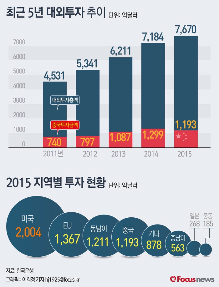 | △ [그래픽] 최근 5년 대외투자 추이 및 2015 지역별 투자현황 |
