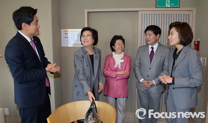 (서울=포커스뉴스) 새누리당 20대 총선 서울 지역 당선자들이 22일 오후 서울 여의도 한 일식집에서 오찬 모임에 앞서 대화를 하고 있다. 왼쪽부터 오신환, 이혜훈, 이은재, 지상욱, 나경원 당선인.