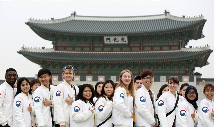 (서울=포커스뉴스) 문화체육관광부 해외문화홍보원이 운영하는 페이스북페이지 ‘코리아클리커스(KoreaClickers)’ 팬들이 22일 광화문광장에서 김갑수해외문화홍보원장과 함께 “한국, 좋아요”를 외치고 있다.