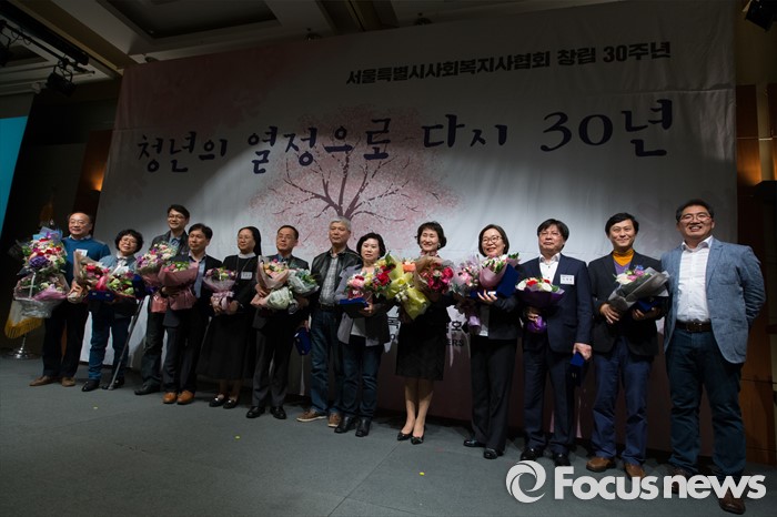 (서울=포커스뉴스) 22일 오후 서울 용산구 백범기념관에서 열린 사회복지사협의회 창립 30주년 기념행사에서 사회복지사들이 기념촬영을 하고 있다.